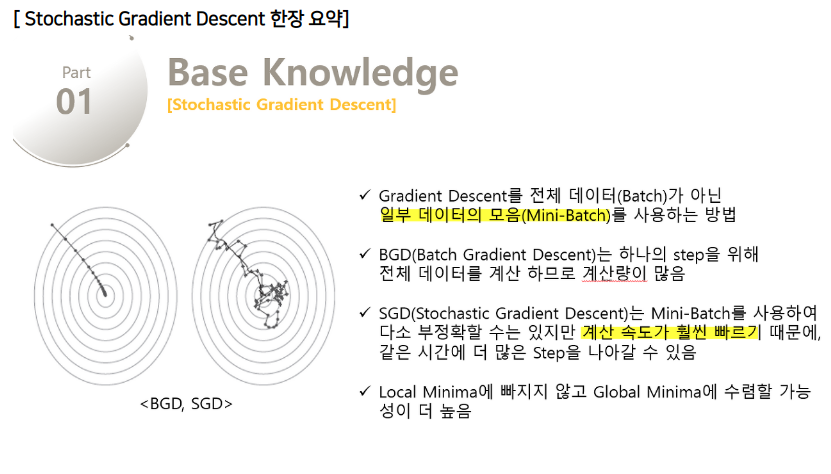 loss를 한번 계산하고 parameter업데이트를 1step씩 거칠 때 마다 정확도는 BGD가 더 좋겠지만 결과적으로는 성능 차이로 인해 SGD를 많은 사람들이 선호한다.