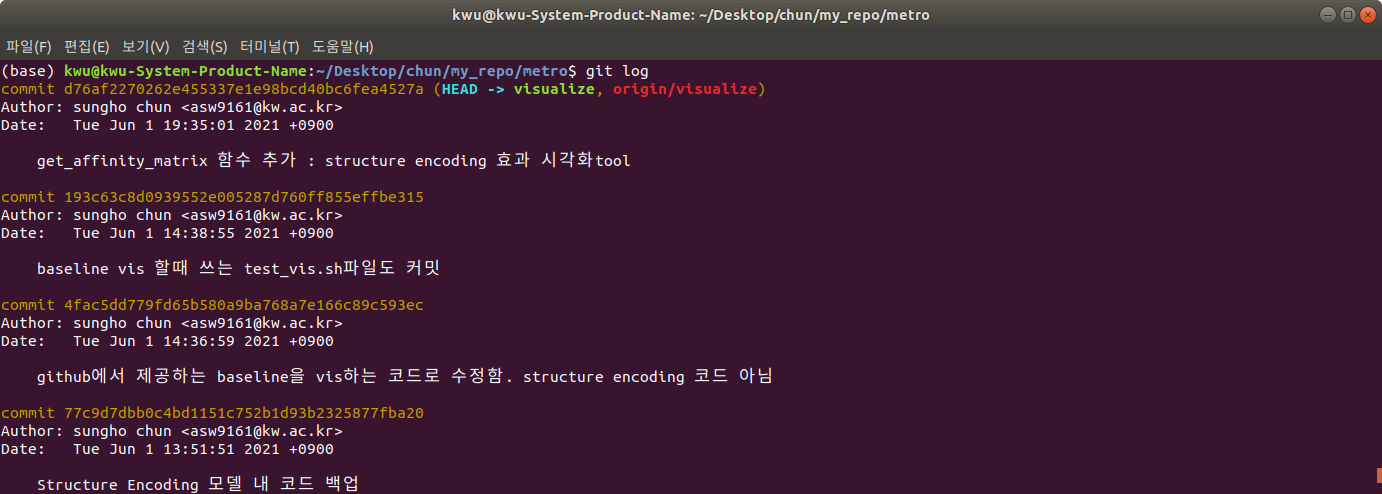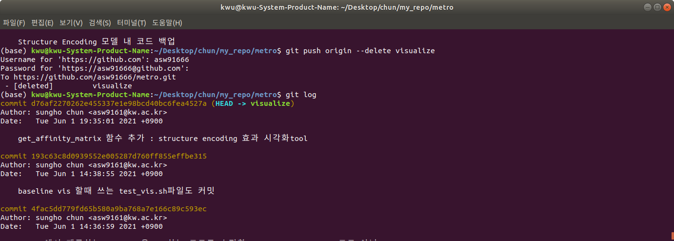이 때 하나의 branch로만 관리하는 것이 편하기 때문에 visualize branch를 삭제하고 싶을 수 있다. 이럴 때는 아래의 명령어를 통해 가능하다.