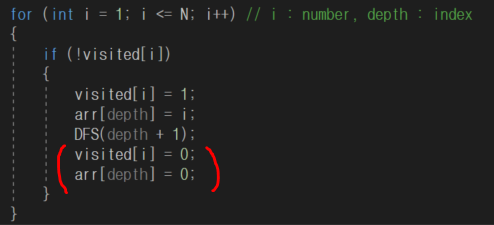 for (int i = 1; i <= N; i++) // i : number, depth : index