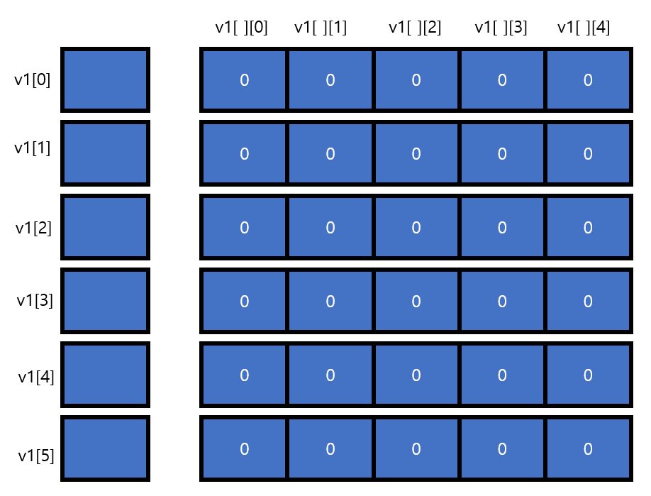 vector<vector<int> > v1(6, vector<int>(5, 0)); // 6칸 만들고, 그 안을 vector<int>(5,0)으로 채운다