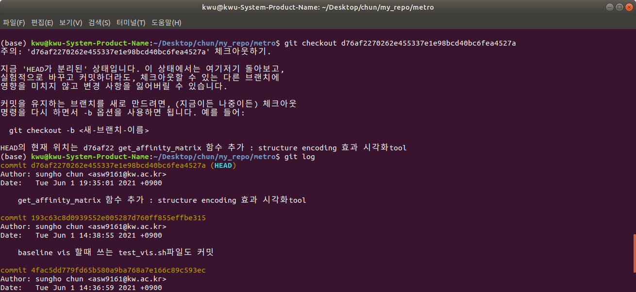 HEAD가 d76af22 로 와있는것을 확인할 수 있고 내 repository는 아래와 같이 바뀌어 있을겁니다.
