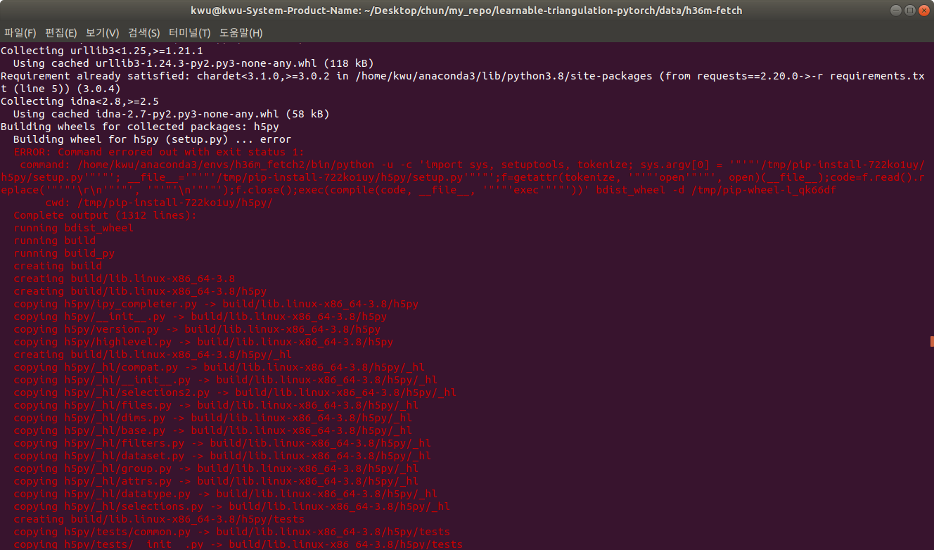 spacepy install 중 error가 발생했는데 대충 아래와 같이 빨간 글씨로 어마무시한 분량이 출력된다.. ㄷㄷ