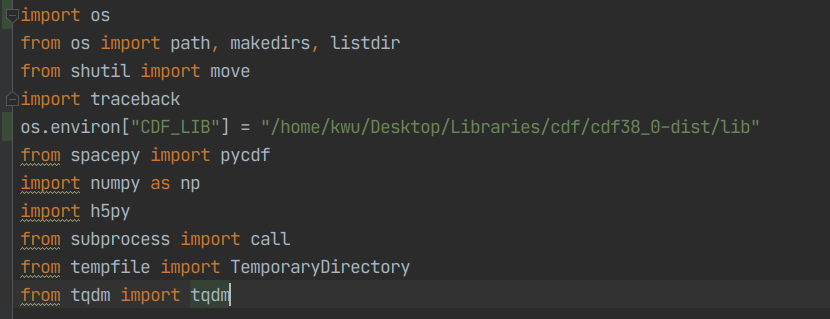 CDF C library 를 사용해야하므로 spacepy를 import 하기전에 환경설정을 통해 CDF C library를 사용할 수 있게 해달라는 내용이다.