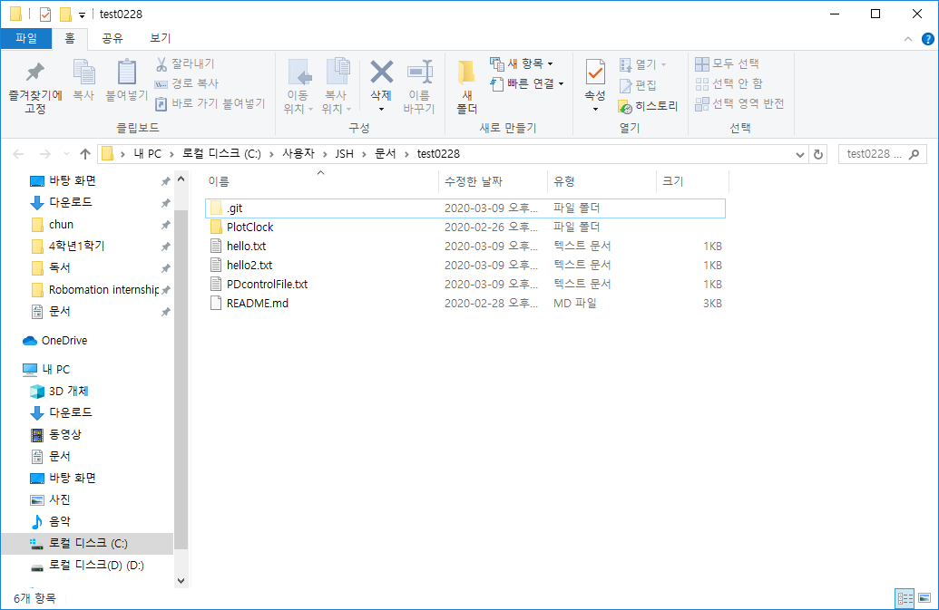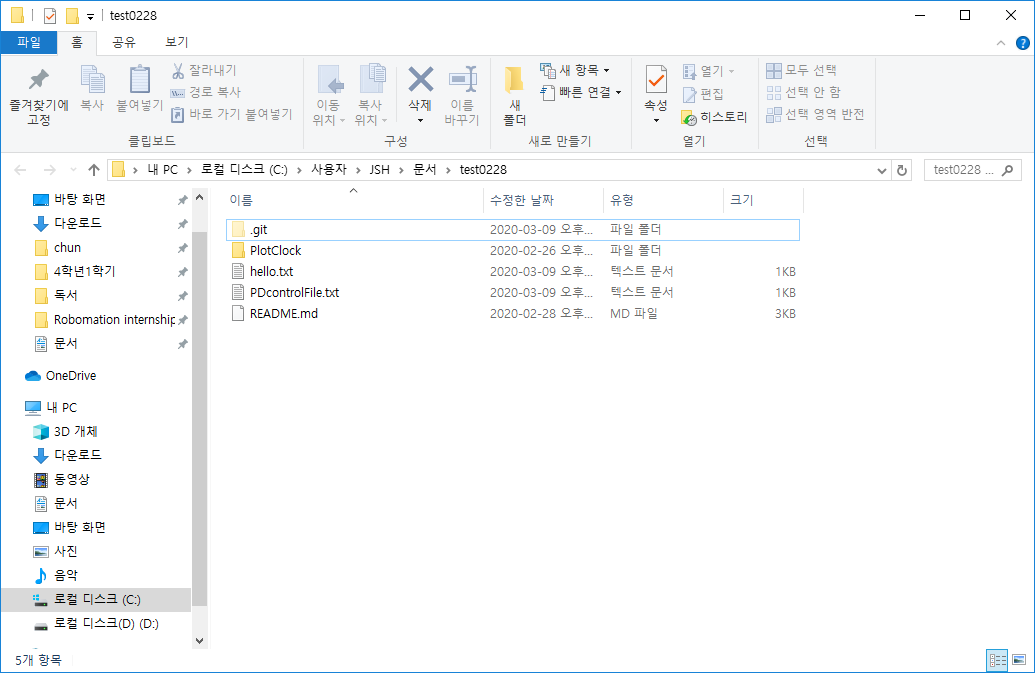 다시 로컬 저장소를 열어보면 다음과 같다. 과거의 버전으로 돌아온 것이다.
