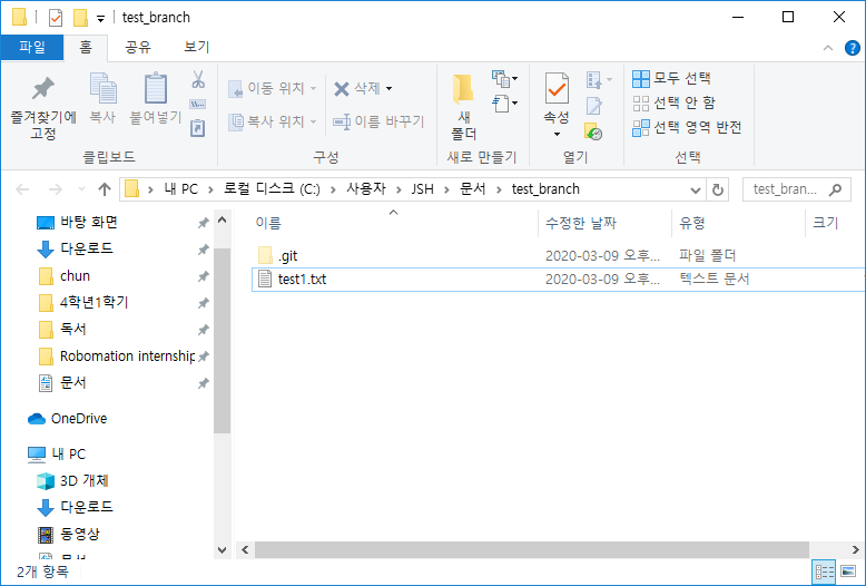 위 사진은 초기에 저장소를 branch하기 전 모습이다.