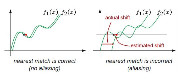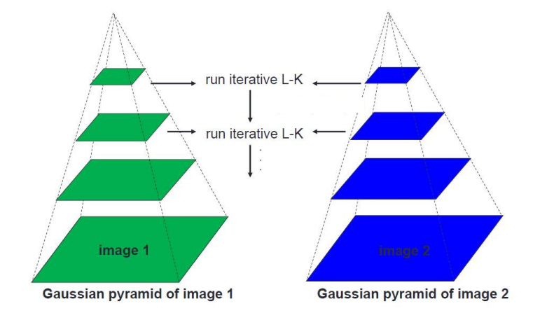 이 때, Lucas-Kanade의 가정에 의하면 같은 motion vector를 가지는 작은 window에 대하여 적용하는 알고리즘이므로 만일 영상내의 object가 큰 움직임의 motion vector를 가진다면 aliasing 이 발생한다.