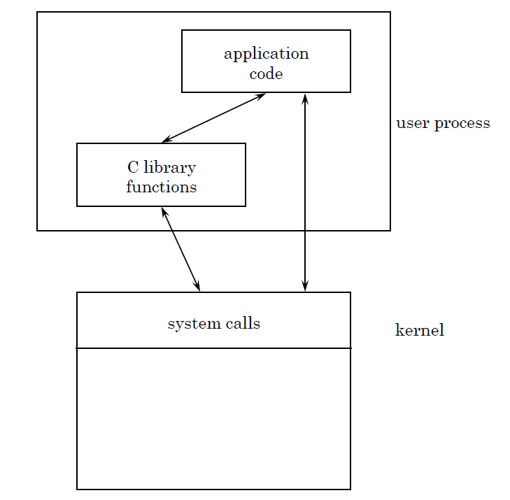 library의 많은 함수들은 실행되기 위해서 System call을 호출한다. 그리고 System call은 Kernel의 일부이다.