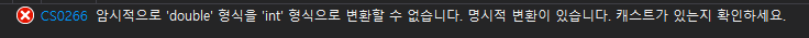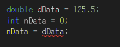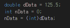 이 때, 명시적인 형변환은 작은데이터형(int) <--> 큰 데이터형(double)로의 변환이 자유자재로 다 가능하지만