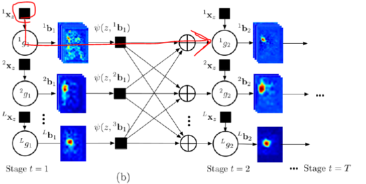 그런데 여기서 중요한 것은 각 단계의 첫번째 g. 즉 g1은 첫번째 분류기인 만큼 stage를 거쳐서 나오는 결과물을 받고 있지 않기 때문에 image feature만을 input으로 하고 있다.