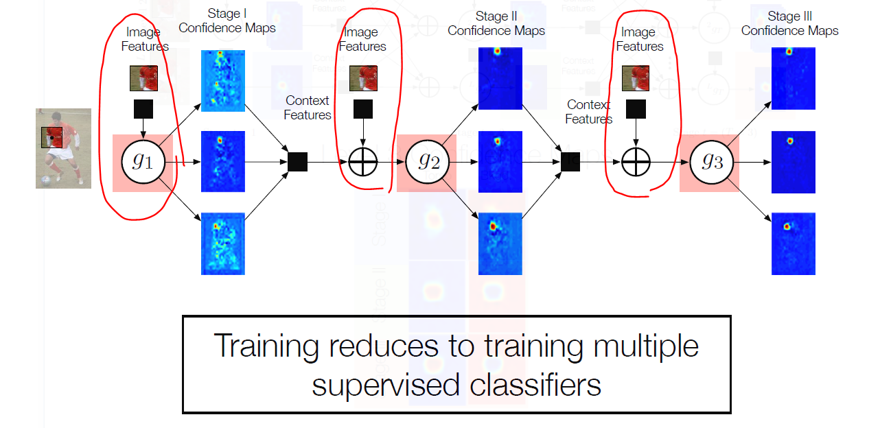 인공신경망을 통한 학습의 중점은 predictor인 g를 학습시키는 것이다. 그런데 잘 보면 g에 계속 image feature가 들어가지만 논문에 의하면 이전 stage의 context feature가 들어갈 때 그 context feature는 이전에 학습했던 image feature의 결과물이고 다시말하면 똑같은 image feature를 다시 학습하는 과정이기 때문에 overfitting이 올 확률이 높다고 한다.