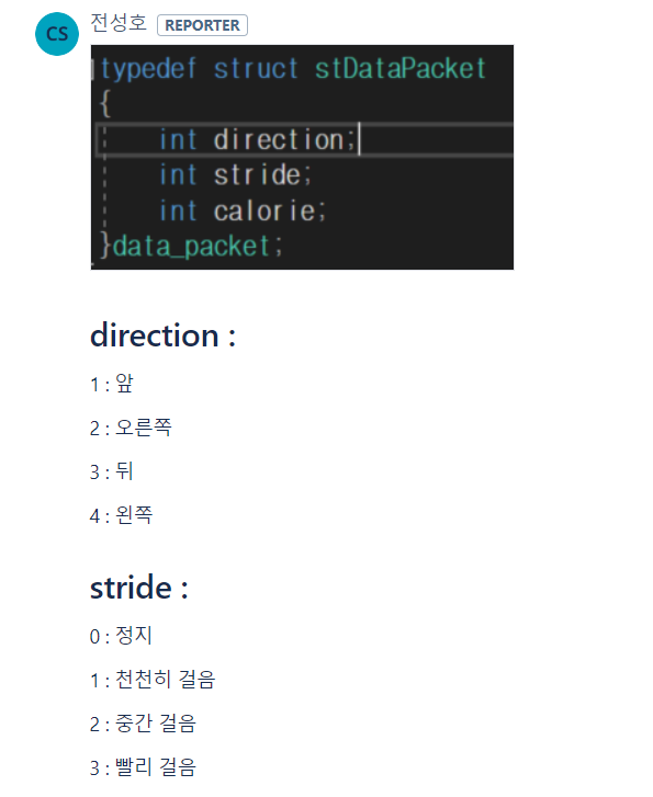 direction, stride, calorie 순으로 각각 1자리, 1자리, 3자리로 해서 총 5자리의 숫자가 들어온다.